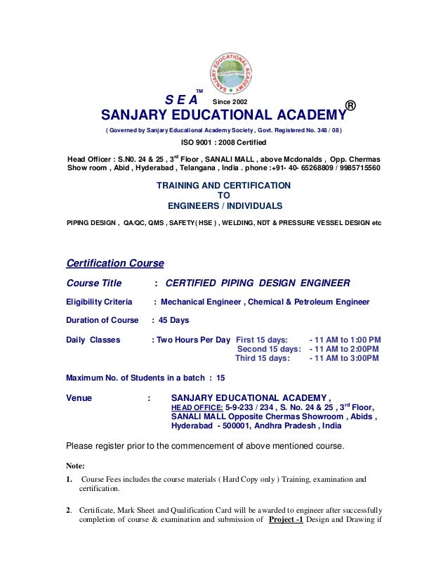 Piping Engineering Course Details Eligibility Syllabus Sumber : www.aiming.in
